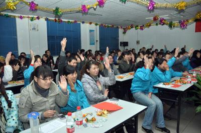| ??????? 1月16日晚19:30,利達光電二〇一二年迎新春聯(lián)歡會在104四樓培訓(xùn)室激情上演,公司領(lǐng)導(dǎo)和員工110余人歡聚一堂,共迎新春佳節(jié),整個會場喜氣洋洋,春意濃濃,溫馨祥和。各事業(yè)部、車間、職能部室的職工們自編自演的三句半、單口相聲、歌伴舞、小品、吉他獨奏、合唱等精彩節(jié)目,用飽滿的熱情來表達對龍年新春的祝福,表達了對新年的期盼,對未來美好生活的向往以及與公司同呼吸、共命運、再鑄新輝煌的信心與決心。 ?????? 利達公司總經(jīng)理李智超在新春聯(lián)歡會上發(fā)表致辭,對全體職工一年來所付出的辛勤勞動表示感謝,對職工家屬所給予的大力支持表示謝意。作為“十二五”的開局之年,為進一步認清公司發(fā)展形勢,展望未來,增強溝通,齊心協(xié)力推動公司“七個調(diào)整”,努力實現(xiàn)產(chǎn)業(yè)優(yōu)化升級與質(zhì)量效益全面提高,以奮發(fā)有為的精神狀態(tài),加快轉(zhuǎn)變公司經(jīng)濟發(fā)展方式,做實做好五大項目,突出主業(yè)著力提高,構(gòu)建利達光電系統(tǒng)競爭 力。新的一年,公司要著力建設(shè)光學(xué)薄膜與數(shù)字投影顯示全球一流企業(yè);新的一年,我們將迎來利達發(fā)展歷史上最難得的發(fā)展機遇。公司與富士康的合作,將推動公司向世界品牌及大規(guī)?;斑M;通過國際合作,以重大項目為抓手,把公司的發(fā)展提高到一個新的水平、新的層次、新的境界,我們將以新的作為和新的成就迎接利達光電的跨越發(fā)展。最后,李總希望全體職工在新的一年繼續(xù)為推進“十二五”的戰(zhàn)略目標,以及各項工作上臺階而努力奮斗, 會上,李智超總經(jīng)理為每一名職工送去祝福,祝愿全體職工新年愉快、身體健康、闔家幸福、吉祥如意。 ??????? 聯(lián)歡會在詩朗誦《土地----致利達光電》優(yōu)美的旋律中拉開了帷幕。聯(lián)歡會在歌伴舞《中國話》的熱烈、奔放的氣氛中活躍,一下子把觀眾的開心、歡樂的情緒調(diào)動起來。三句半《喜迎新春》、《利達發(fā)展新事多》鼓、鑼、镲交替清脆鳴響,四人輪番上陣道輝煌,尤其是節(jié)目臨近結(jié)束時四人合力送出的舞蹈,帶出了祥和、喜慶、熱烈的新春氣息;小品《新白娘子》用現(xiàn)代版的語言和行為方式,表演者古今臺詞合用頗具幽默風(fēng)趣,臺上笑料迭出,臺下笑聲、掌聲不斷,晚會現(xiàn)場成了歡樂的海洋。行政部選送的小品《使命》、《職責(zé)》,構(gòu)思獨特,表演形式新穎,武打動作逼真,表達了公司員工熱愛企業(yè),對待自己的工作愛崗敬業(yè)、恪盡職守;單口相聲《我的優(yōu)點》語言幽默風(fēng)趣、捧哏逗哏配合默契,表演惟妙惟肖,將公司2012年的新氣象一一呈現(xiàn);吉他彈唱《老男孩》、粵語歌曲獨唱《真的愛你》等豐富多彩的節(jié)目,展現(xiàn)了利達人多才多藝、能歌善舞。五次抽獎穿插整臺聯(lián)歡會始終,不斷將聯(lián)歡會推向高潮,穿插的抽獎環(huán)節(jié)使現(xiàn)場員工驚喜萬分。聯(lián)歡晚會伴隨著《明天會更好》的優(yōu)美旋律圓滿結(jié)束。 ??????? 聯(lián)歡會雖然結(jié)束了,但全體演職員工帶給大家的歡樂,帶給大家的對利達的熱情,不會因為冬日的嚴寒而消退,也不會因為時間的流逝而減淡,每一位利達人將銘記這種歡樂,然后將歡樂化為激情,投入到建設(shè)具有國際競爭力的利達企業(yè)的大潮中去。此次聯(lián)歡活躍了員工文化生活,加強了員工之間的溝通,增強了企業(yè)的凝聚力,營造了良好的和諧氛圍。展望新的一年,廣大員工對企業(yè)的穩(wěn)定、持續(xù)發(fā)展充滿了信心。 廣大員工們決心在公司正確領(lǐng)導(dǎo)下,繼續(xù)努力拼搏,取得更大的工作業(yè)績。(文/周玉霞) ??????? 以下是會議現(xiàn)場剪影: |