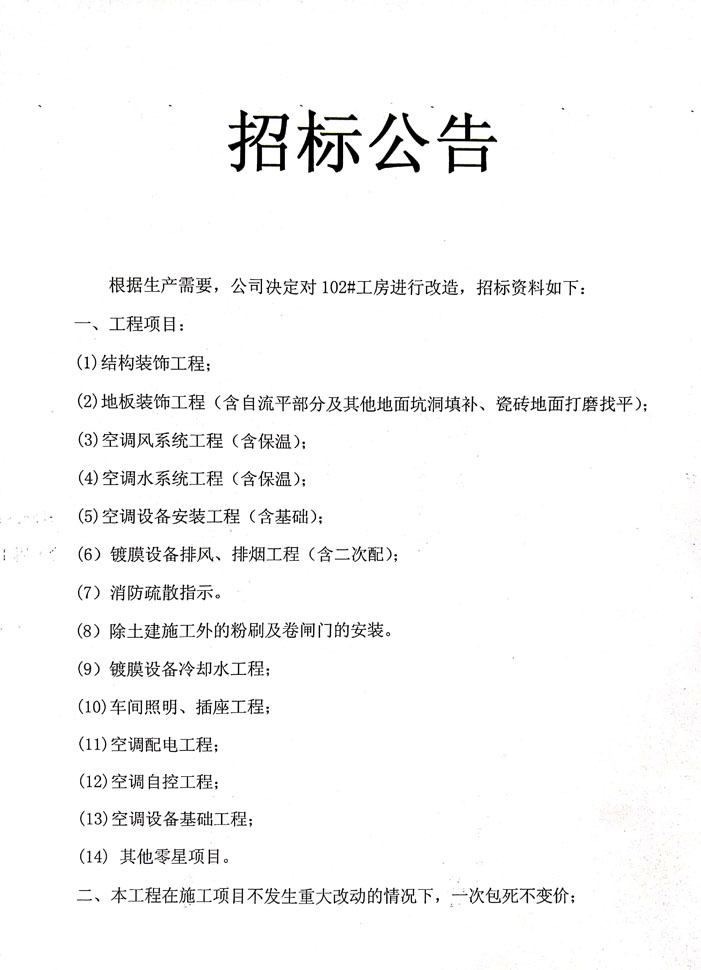 102#廠房改造招標公告