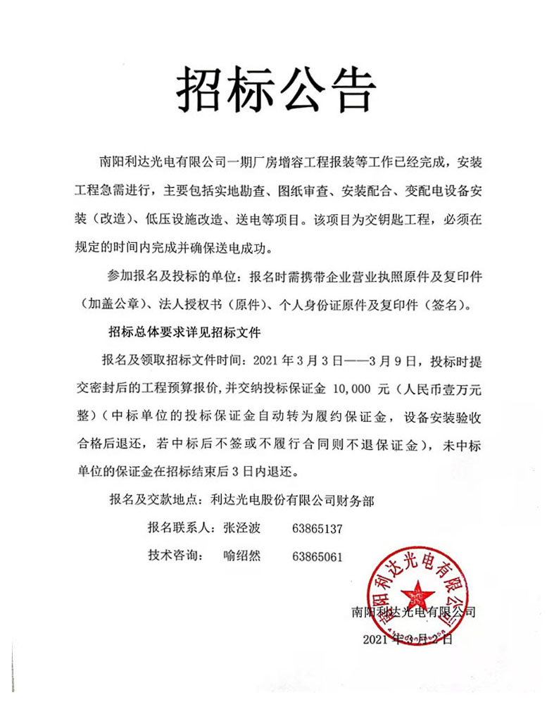新廠區(qū)廠房電力擴(kuò)容改造招標(biāo)公告